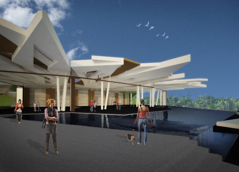The first time we visited the site, we were struck by  two main things: the vertical rhythm that the coconut trees on site made, and the ever-changing pattern of shadows that their foliage created. We used these cues from nature to give shape to our structure. Dubbed as an “eco-tectonic imprint”, our proposed pavilion simply became an architectural translation of emergent patterns of nature that moved us as we absorbed the characteristics of the place.